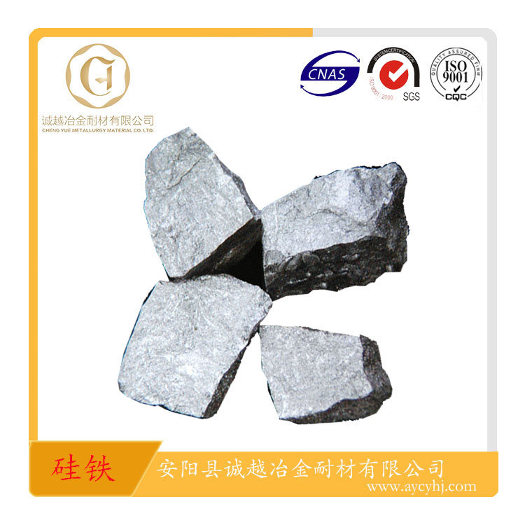 硅鐵是鐵和硅組成的鐵合金。 硅鐵是以焦炭、鋼屑、石英(或硅石)為原料,用電爐冶煉制成的鐵硅合金。由于硅和氧很容易化合成二氧化硅,所以硅鐵常用于煉鋼時(shí)作脫氧劑,同時(shí)由于SiO2生成時(shí)放出大量的熱,在脫氧的同時(shí),對(duì)提高鋼水溫度也是有利的。同時(shí),硅鐵還可作為合金元素加入劑,廣泛應(yīng)用于低合金結(jié)構(gòu)鋼、彈簧鋼、軸承鋼、耐熱鋼及電工硅鋼之中,硅鐵在鐵合金生產(chǎn)及化學(xué)工業(yè)中,常用作還原劑。